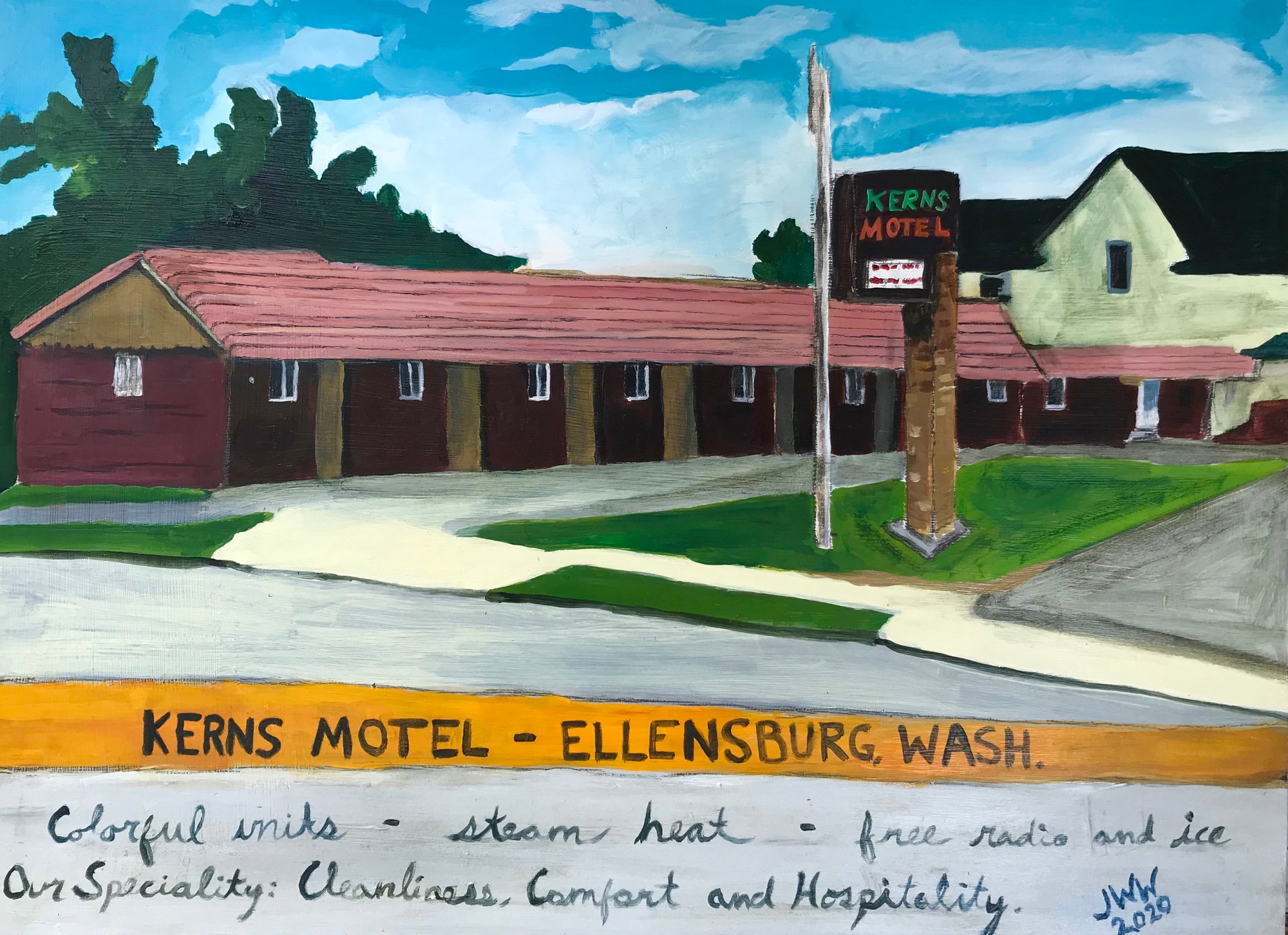 This painting is acrylic on panel and is 17" x 24", unframed. It is part of the Pandemic Postcard Series - Volume 1. It was created in April of 2020.