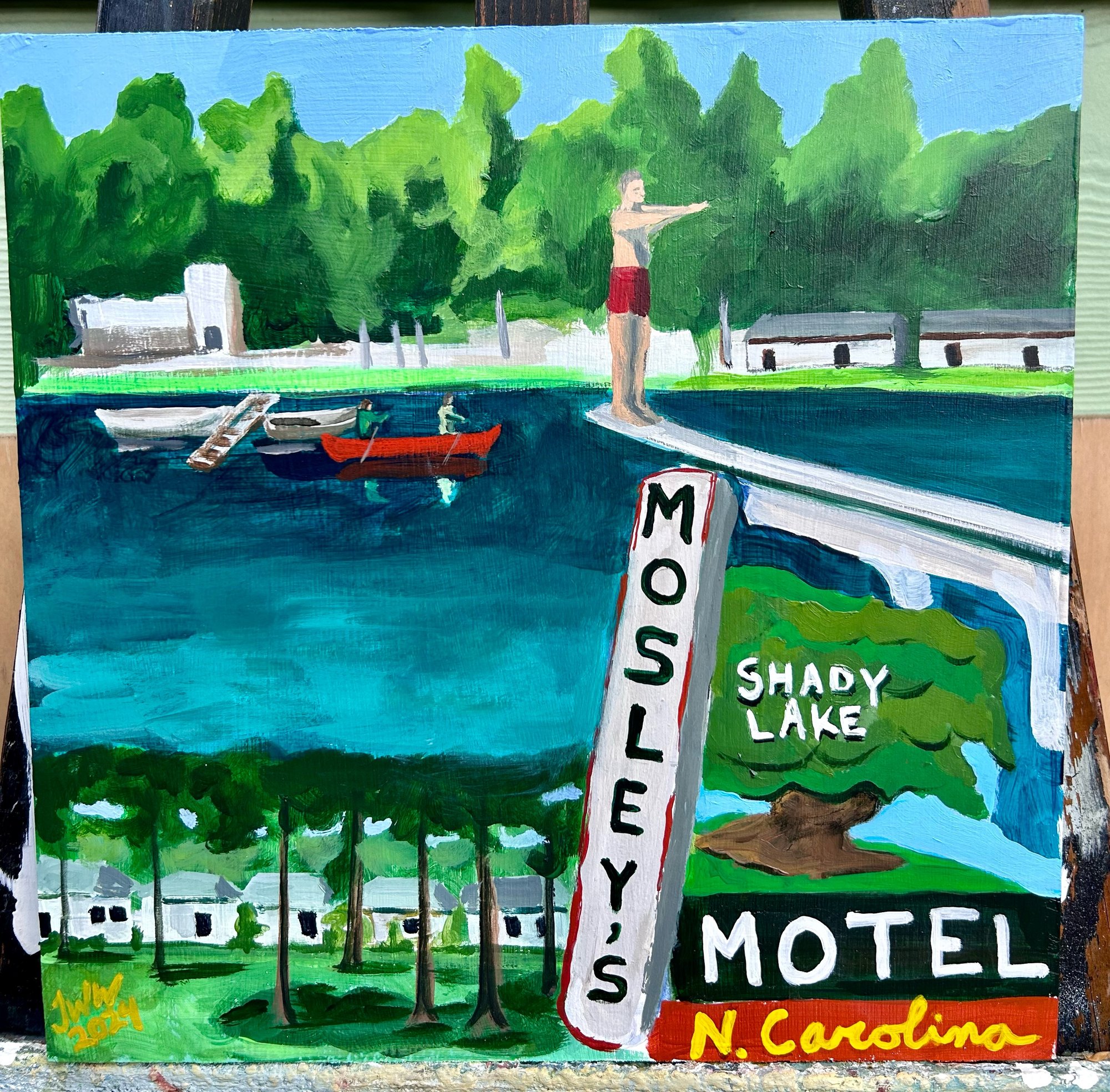 12" x 12". Acrylic on Panel with a natural wood lattice frame. Ready for hanging.