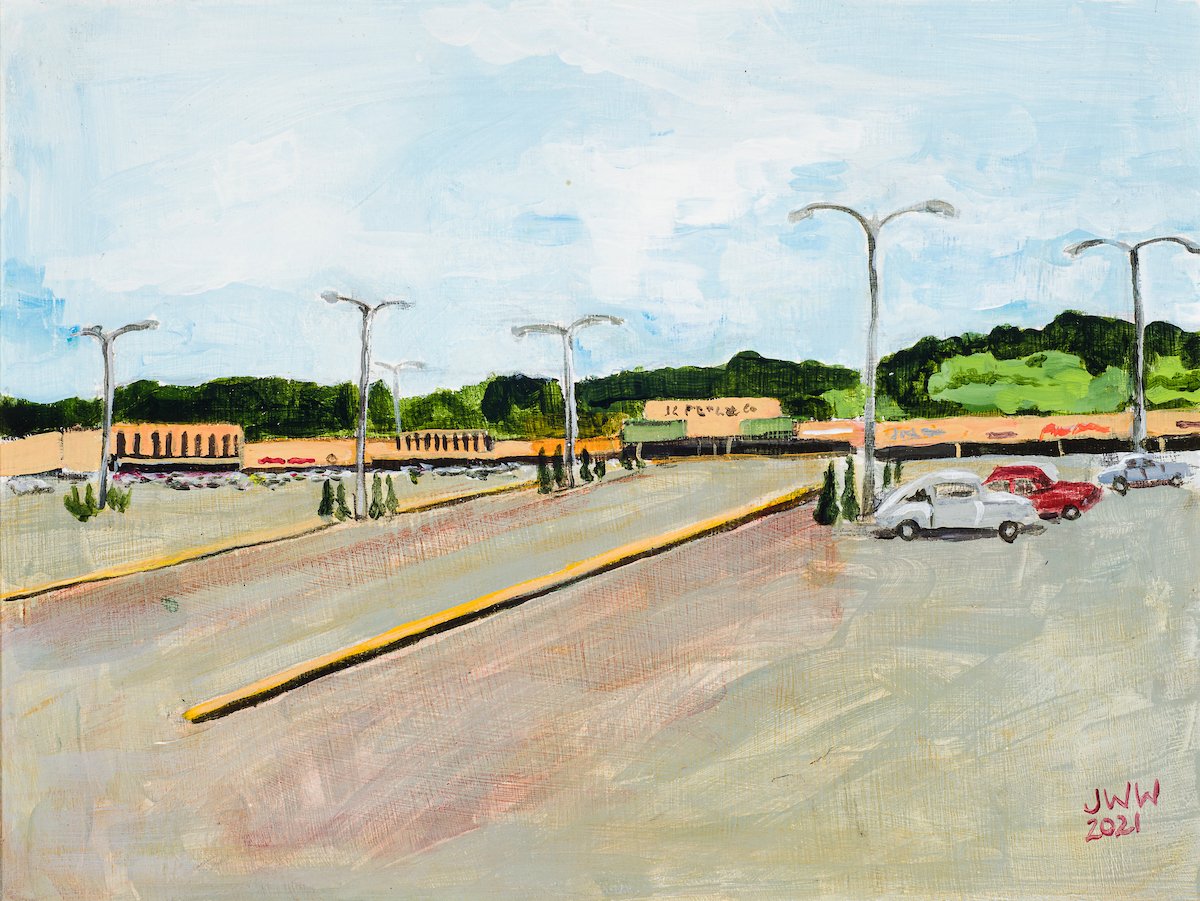 This is a limited edition print of a painting called The Smallest Mall. The print is 10" x 13" , including the 1/2" border with a deckled edge. Hand signed and titled in pencil. Ships flat, on foam core.