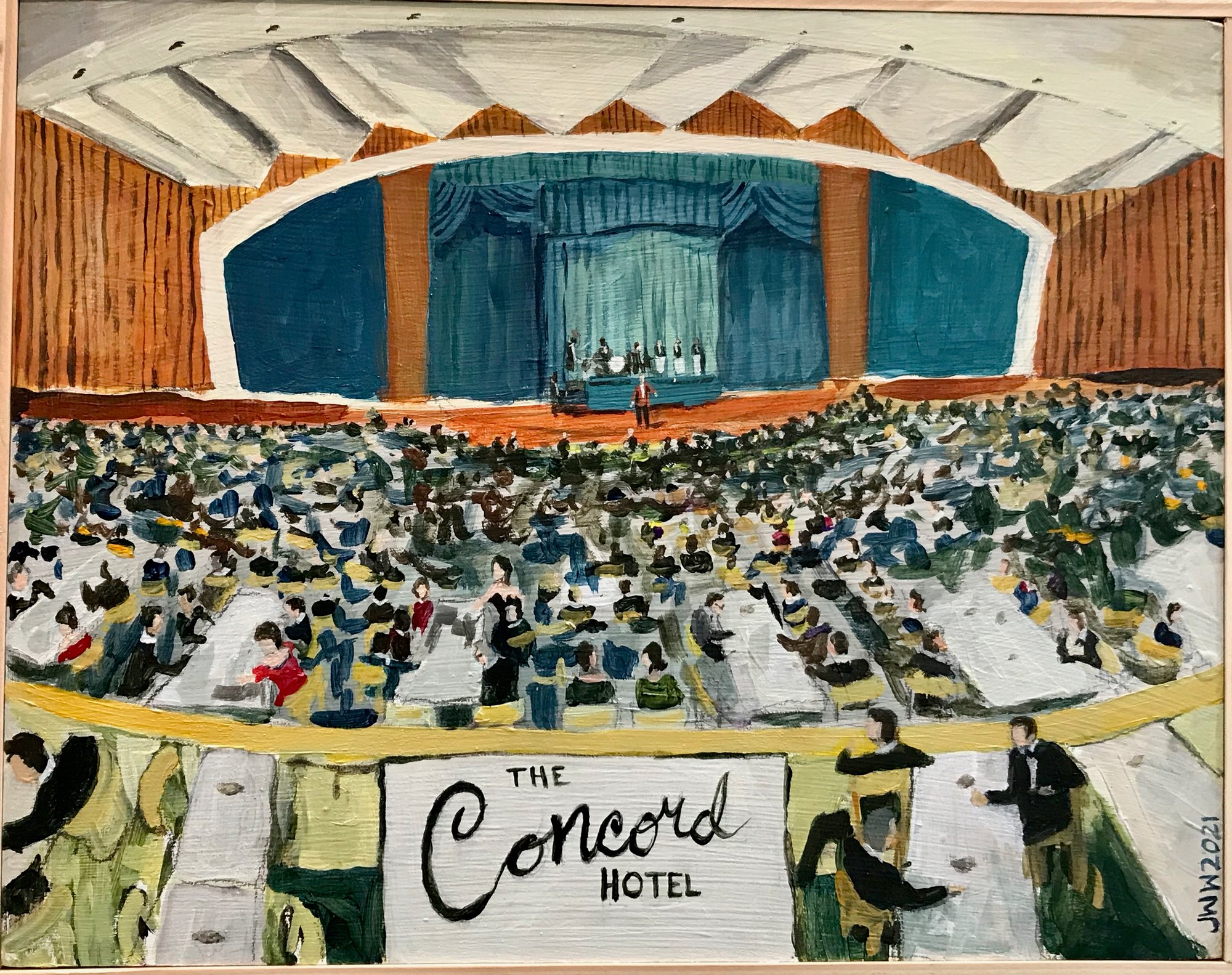 This painting is acrylic on a 11"x14" panel, framed in a simple wood lattice frame. The Concord Hotel was located in the Catskills in New York. I imagine that it was quite the place, back in the day - look at that huge room! This is part of a series called STAGE. If you live in Seattle/Tacoma or Portland, please contact me directly before you purchase. Most likely, I can deliver and waive the shipping price. Its a chance so save a little money, and have a little visit!